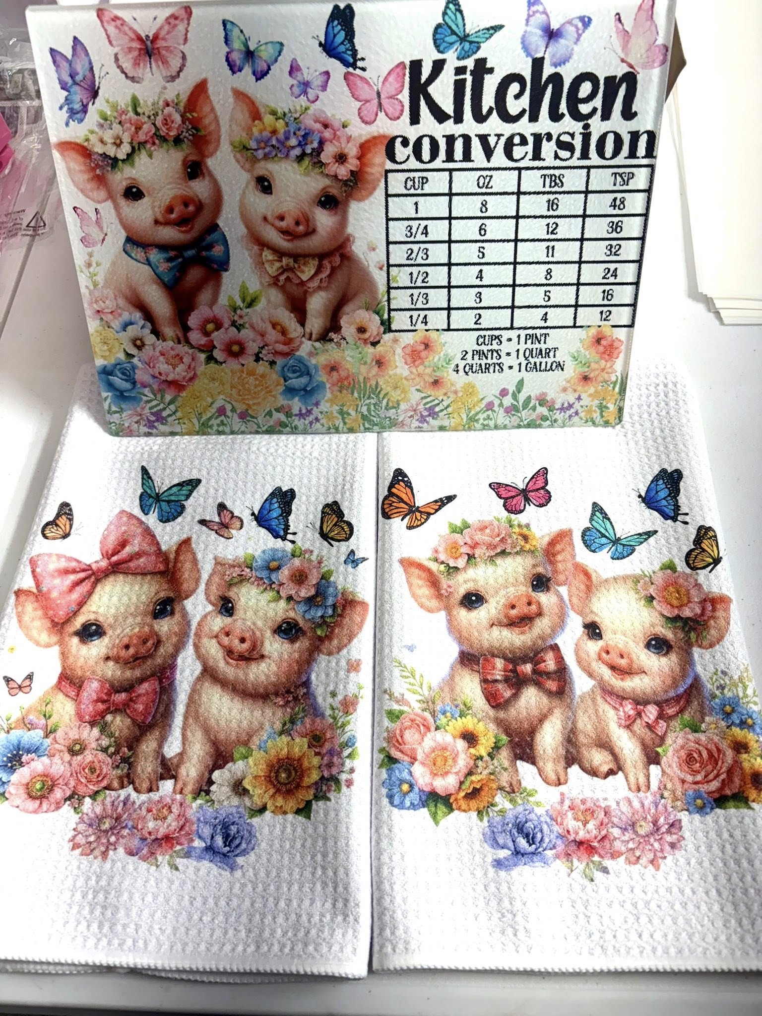 3 Piece Set comes with a (Cutting Board and 2-Towels OR 1 Towel & 1 Pot Holder)