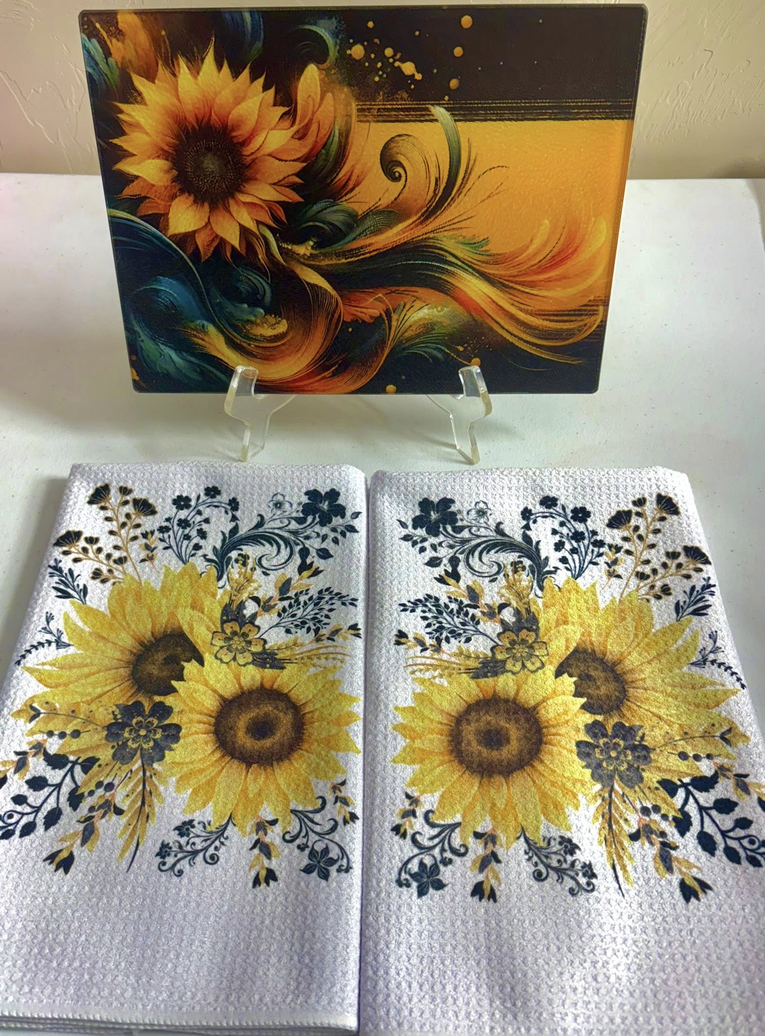 3 Piece Set comes with a (Cutting Board and 2-Towels OR 1 Towel & 1 Pot Holder)