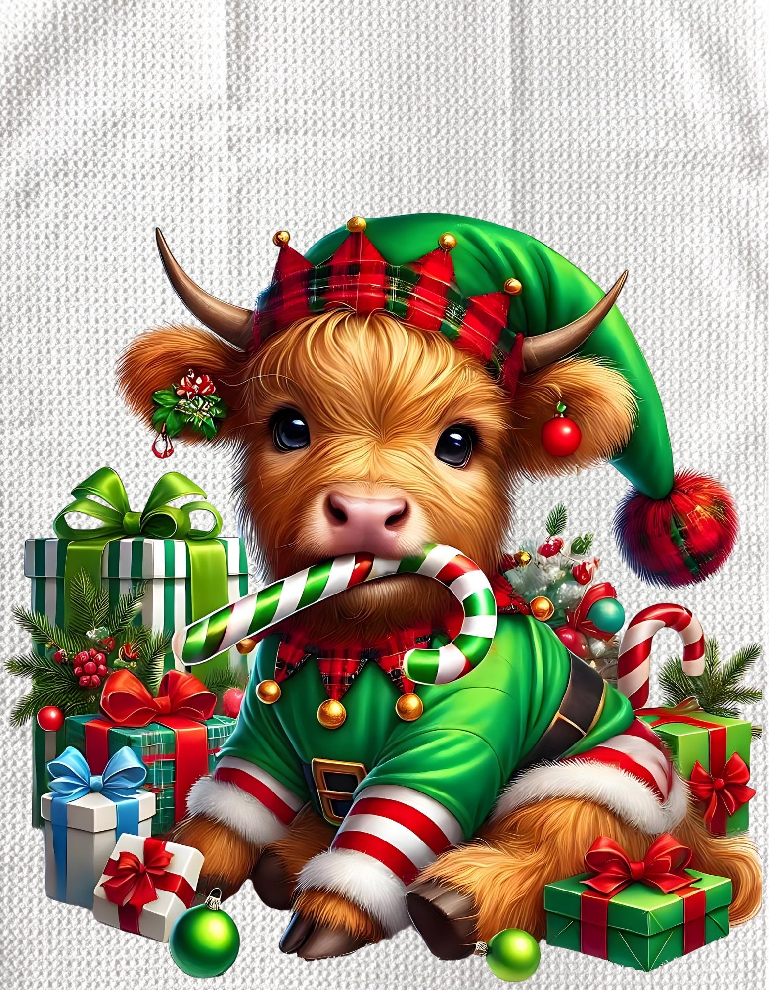 TOWELS - HIGHLAND COW CHRISTMAS ELF