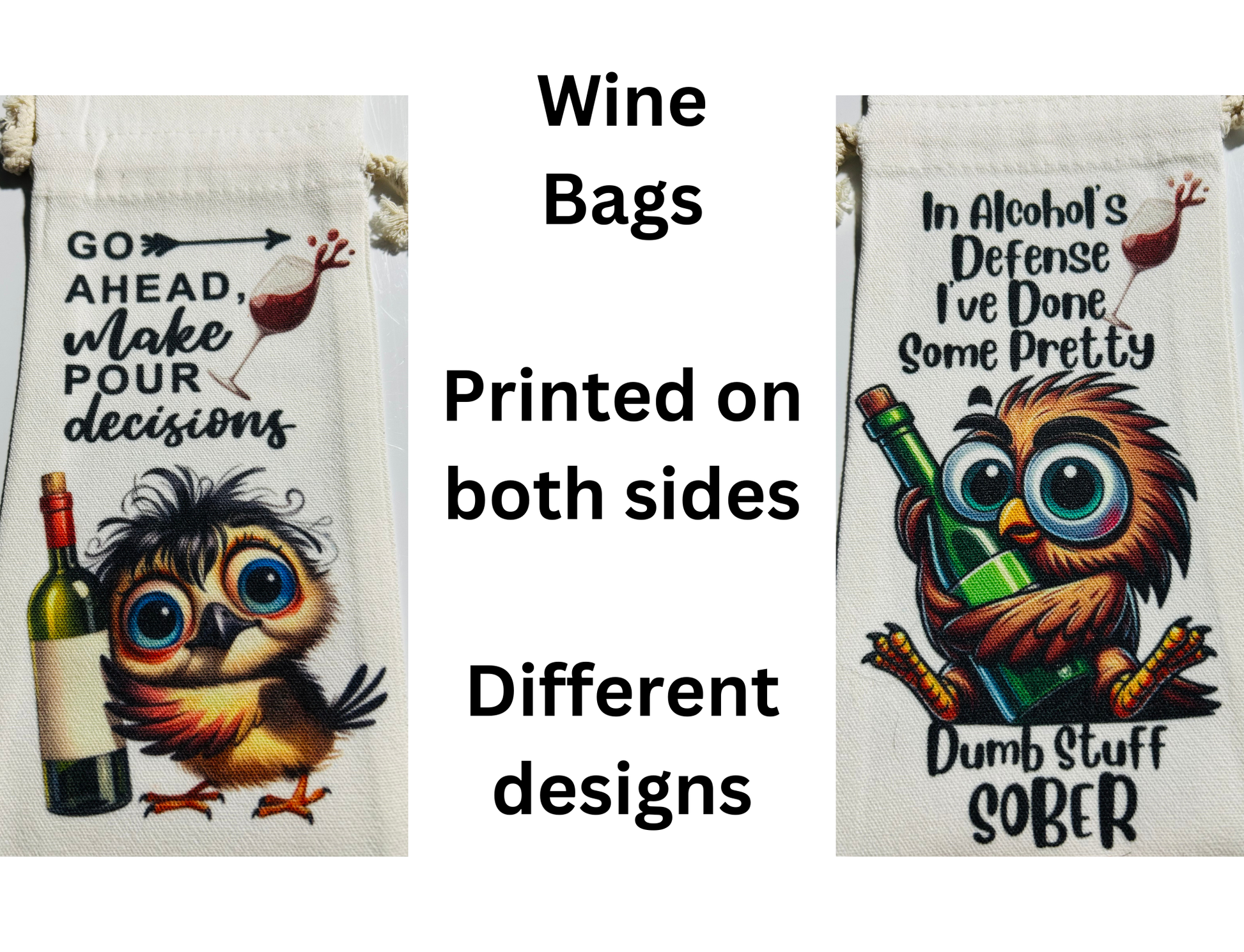 PICK FROM THESE PRE-DESIGNED WINEBAGS OR GO TO BLANK CUSTOM TO BUY YOUR WINE BAG AND THEN CONTACT ME THROUGH CUSTOM ORDERS TO WORK WITH ME ON YOUR PERSONALIZED DESIGNS.